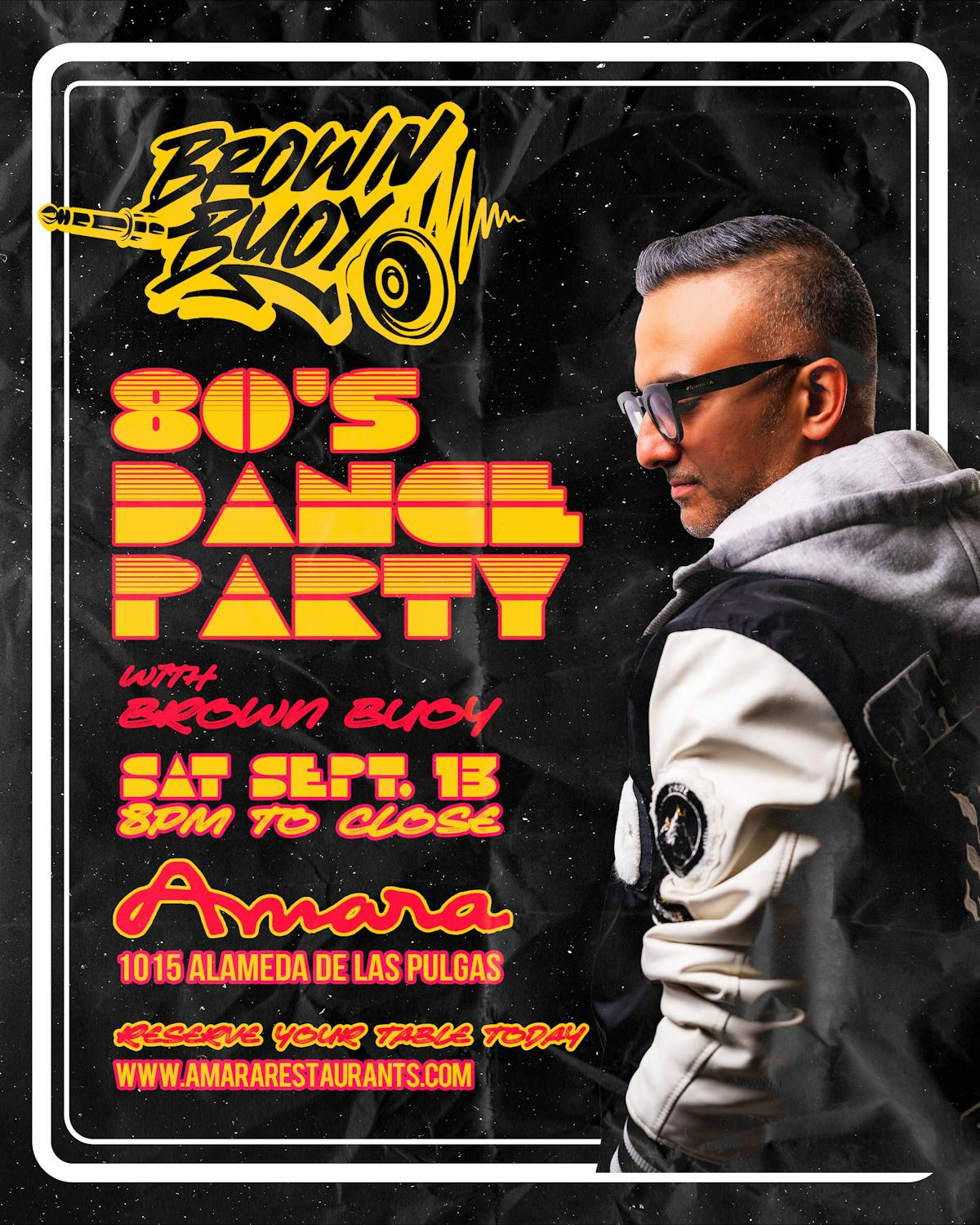80’s Dance Party at Amara, DJ Brown Buoy | Sep 13, 8pm